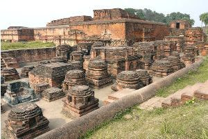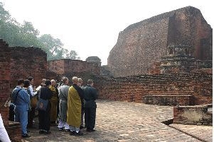 ホテルに戻り、朝食後、尼蓮禅河(にれんぜんが・ネーランジャ河)を横に見ながら、ラジギールからナーランダーへと向かう。11時15分、ナーランダ―到着。ここは多くの仏教を学ぶ者達が通った、仏教大学跡。狭き門をくぐり抜けると、そこには煉瓦積みの大きな跡地が広がる。